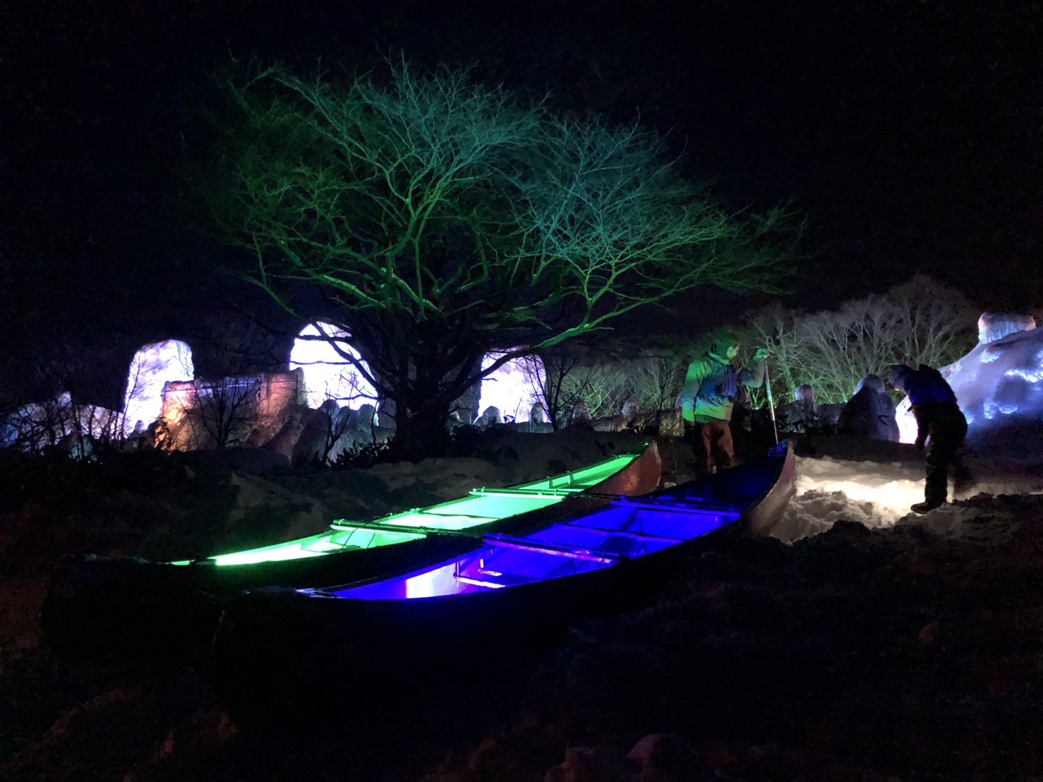 そんな氷濤会場の横にLEDでライトアップされたカヌーを浮かべれば
