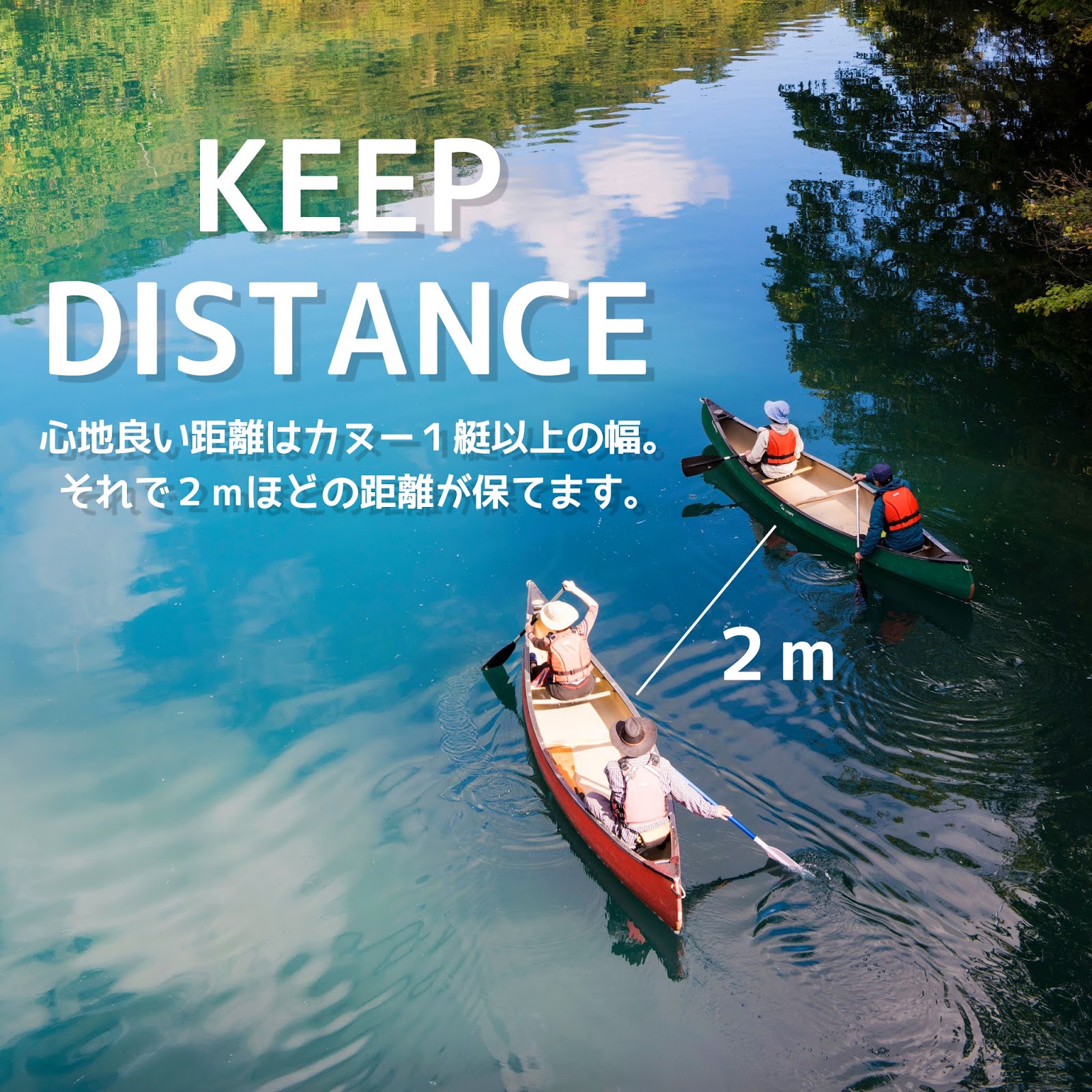水上に出る際にはカヌーとカヌーの間に1艇分以上の間隔をあけると
