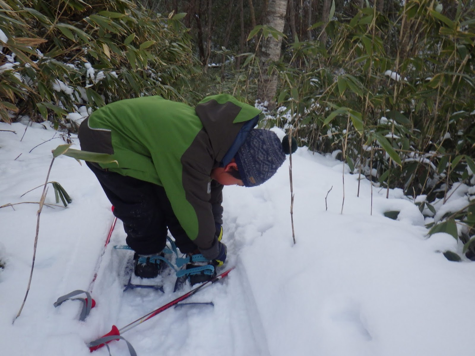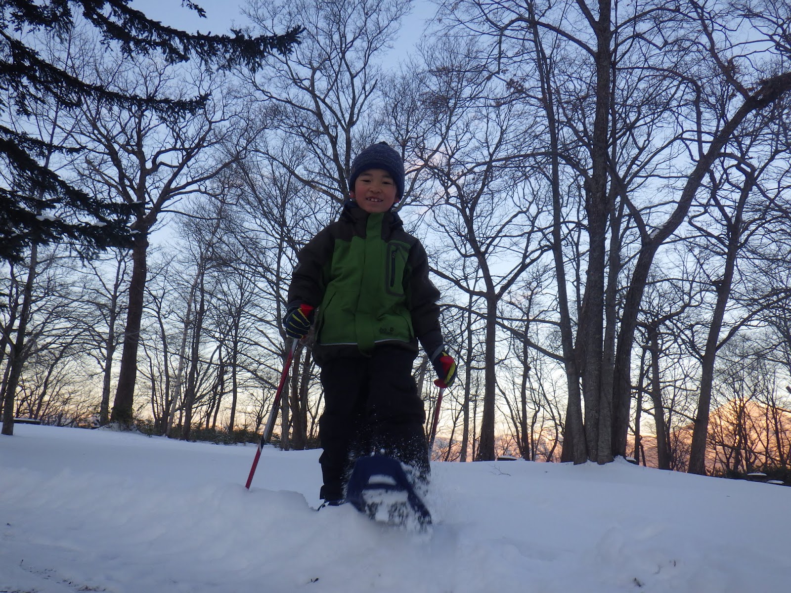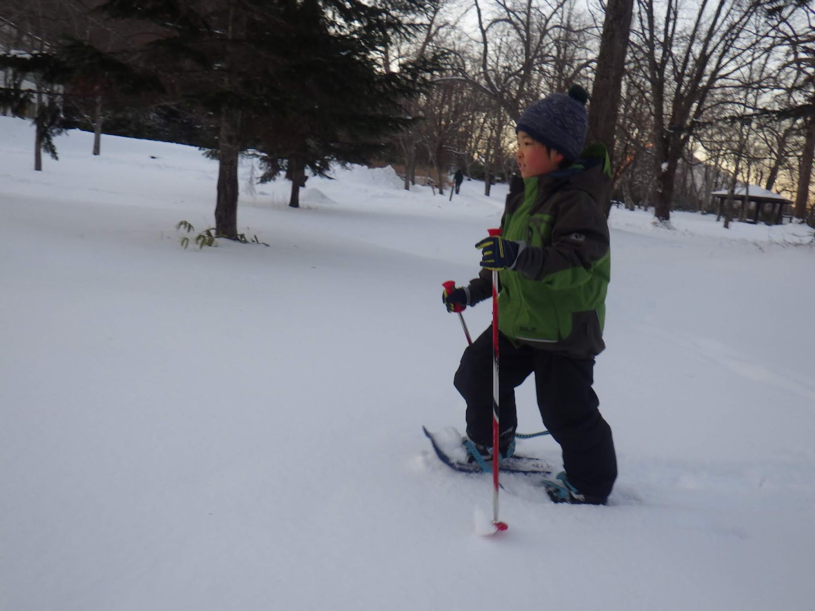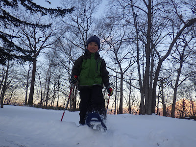ツボ足だと歩くのが大変な雪の上も子どもでも楽々進めます。