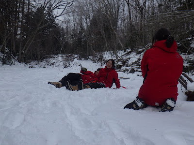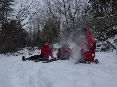 途中雪遊び。
