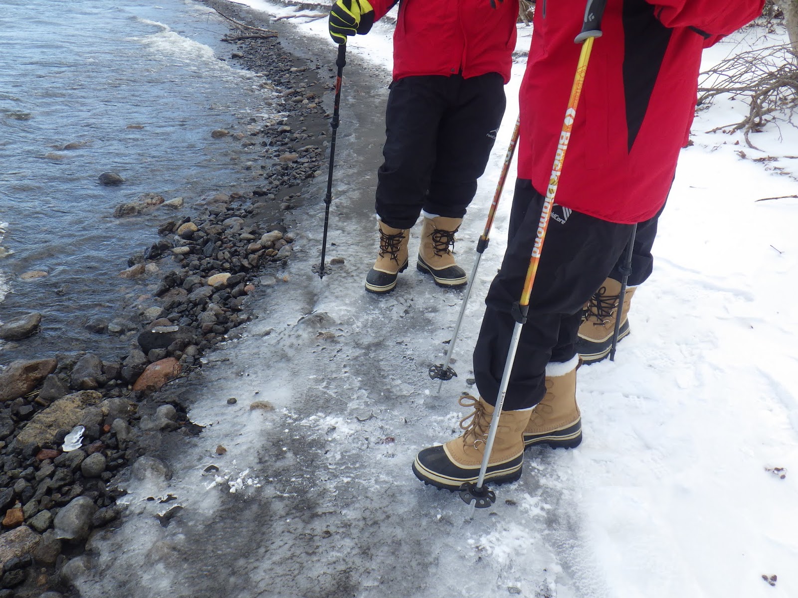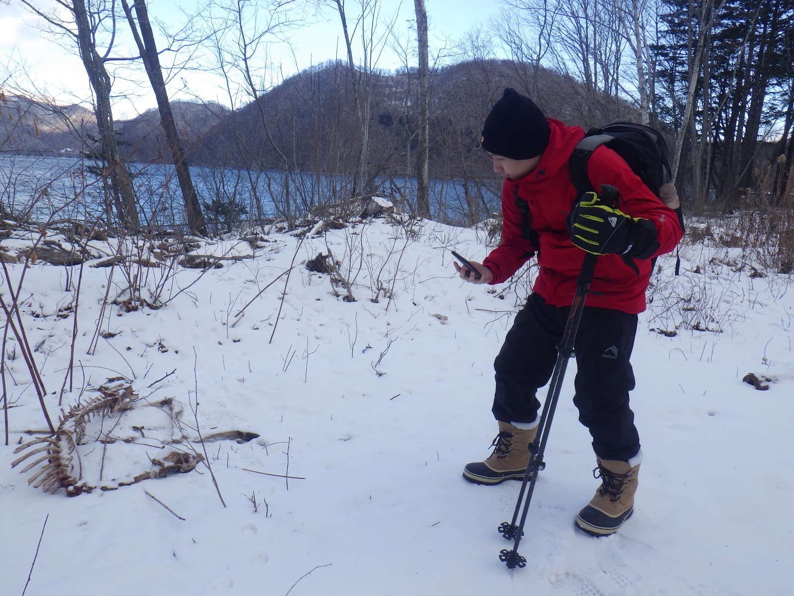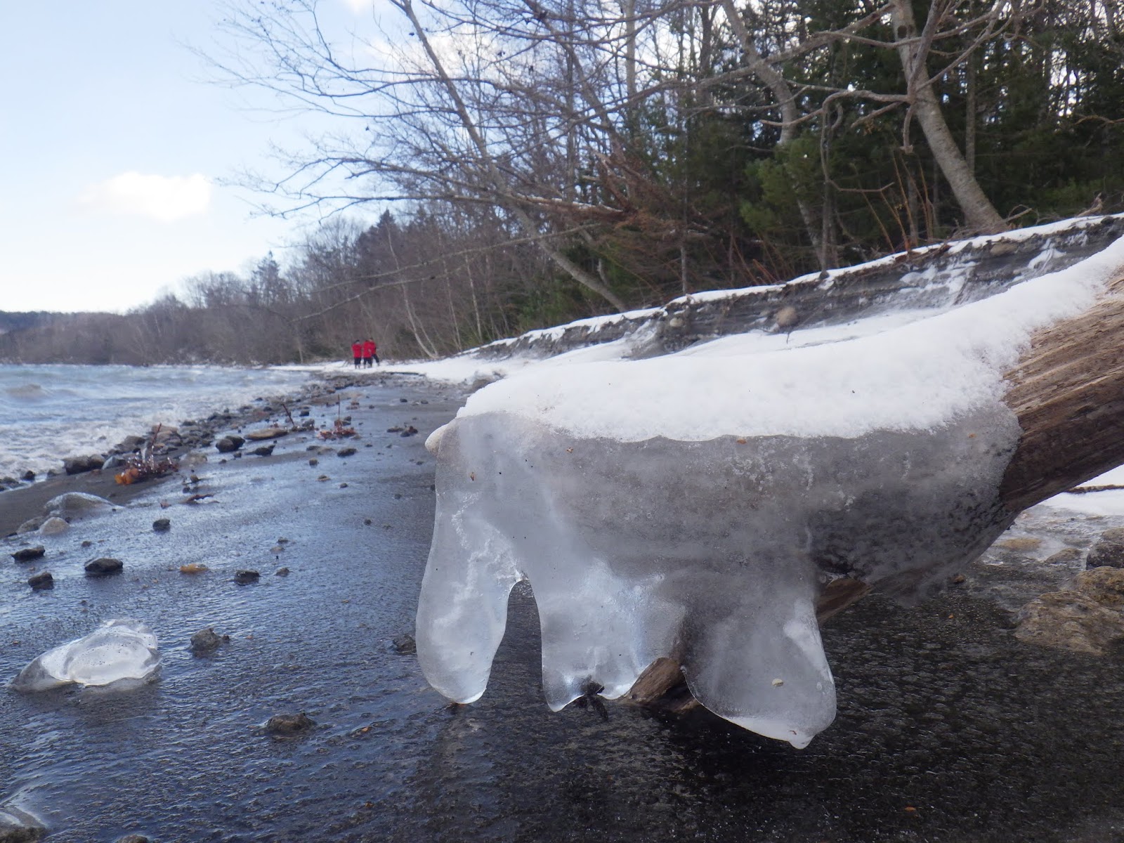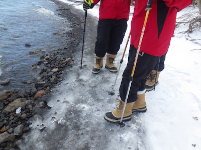 凍った湖畔を歩いていきます。