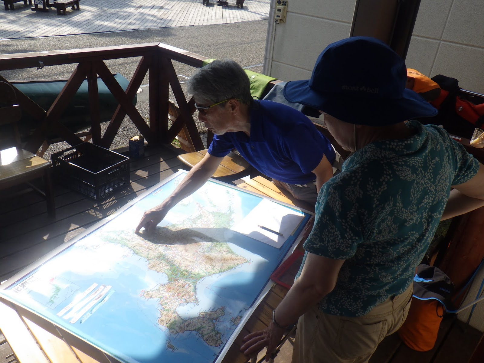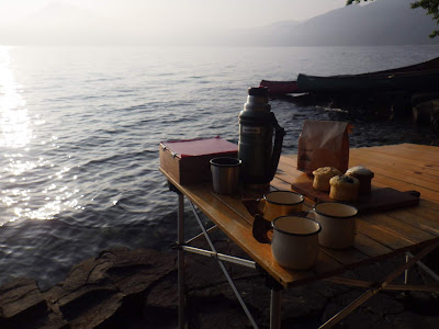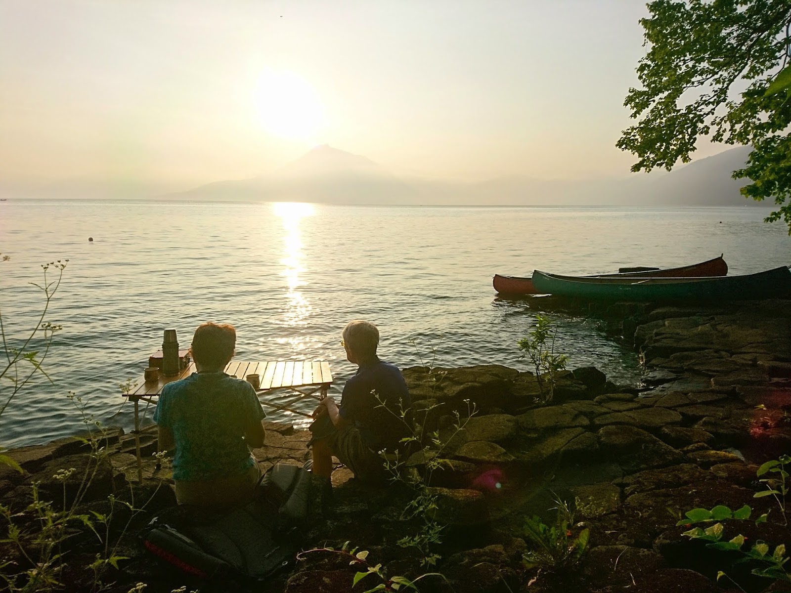 夕日の見える素敵なポイントで沈む対岸を眺める。