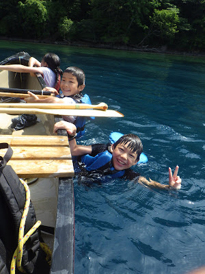 シュノーケルで水中観察。