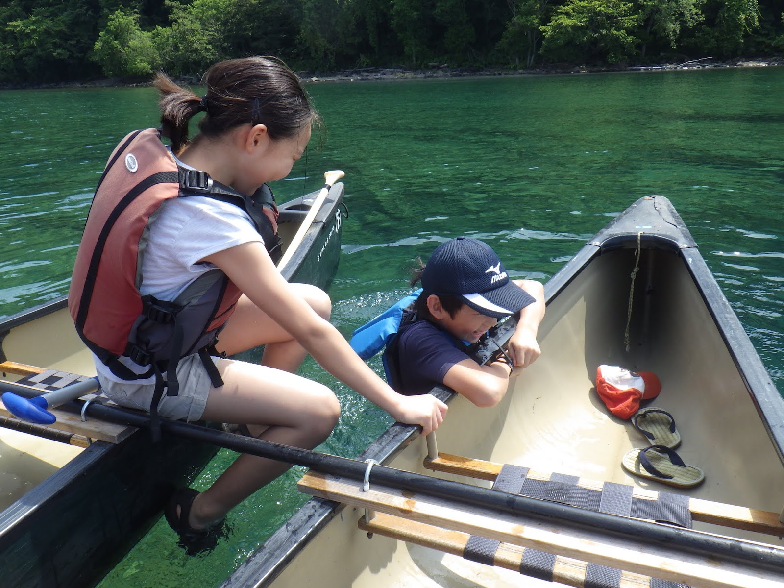 夏のプライベートカヌークルージングは2艇つなぎでプライベートツアーな為