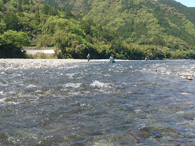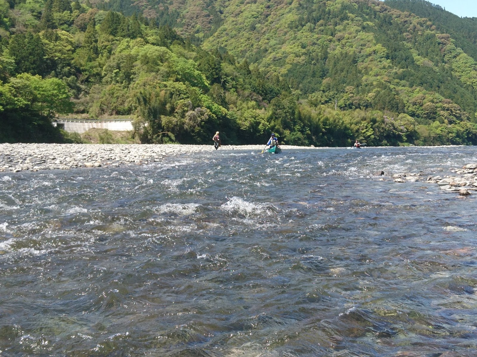 流れの速いところの前はやはりスカウティングでルートを決める。