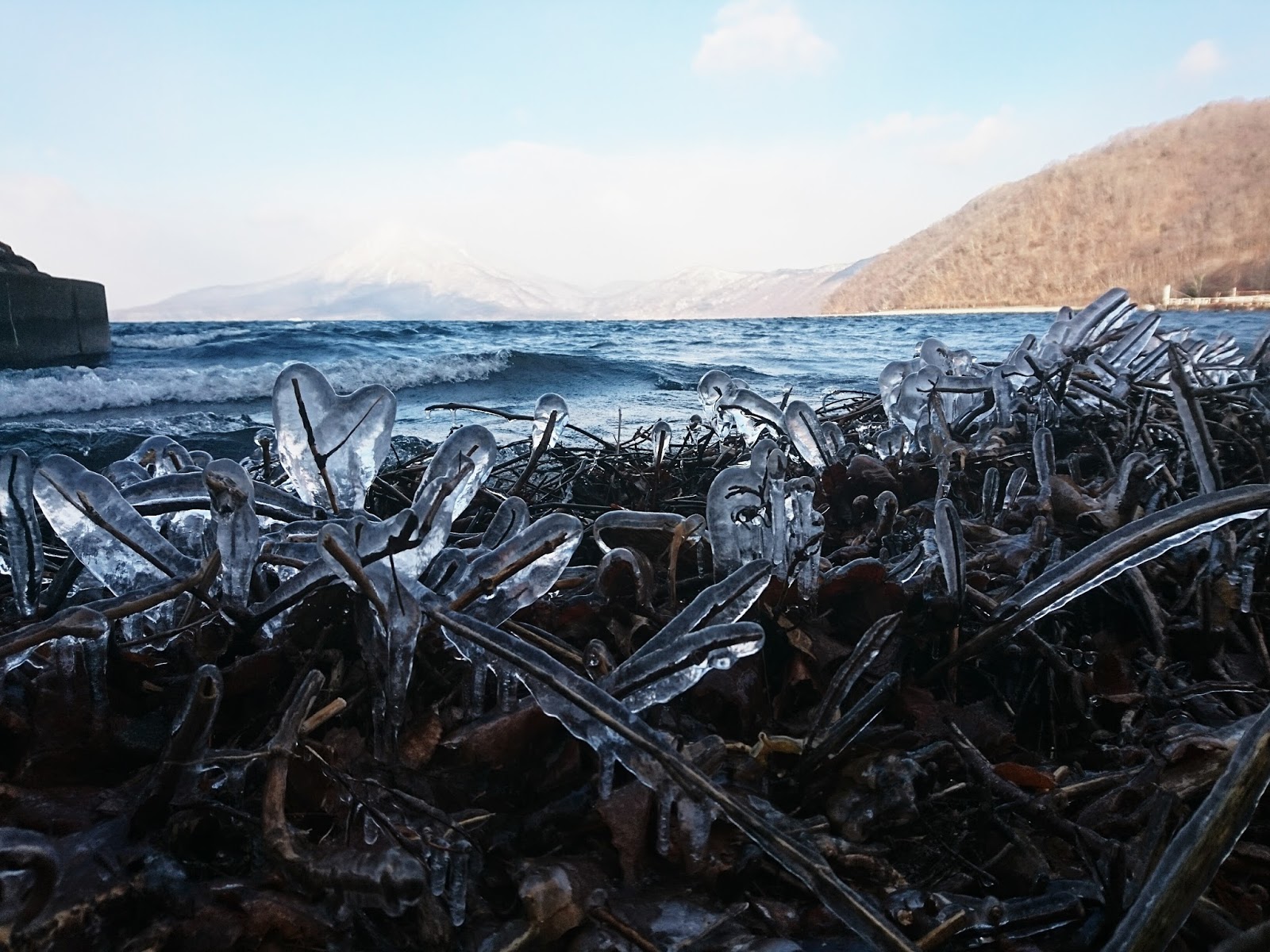 支笏湖冬の風物詩「しぶき氷」始まる