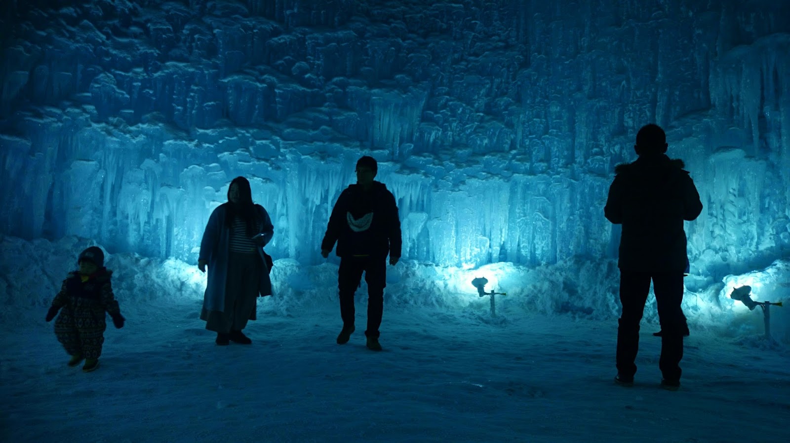 2月の中旬(氷濤期間の後半)は氷像の氷も薄くなり