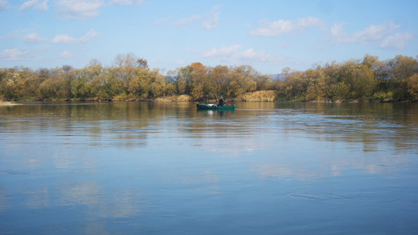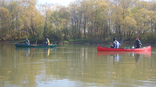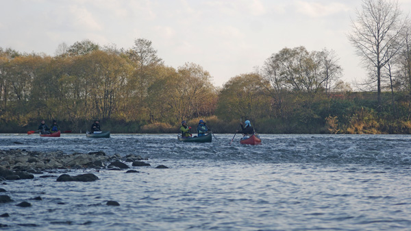 撮影機材も載せ100kgを超えるカヌーはこの流れがないと進むのが厳しい。