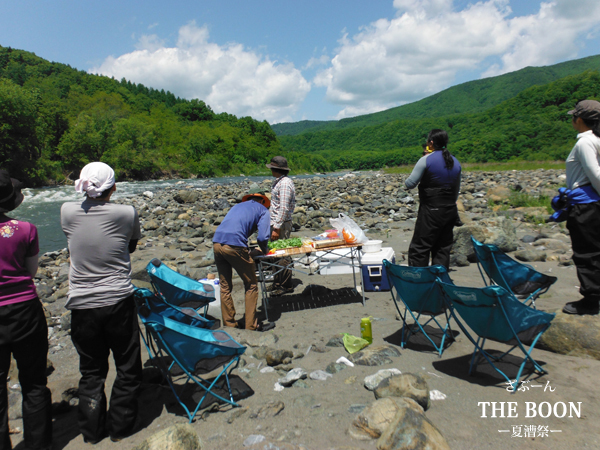河原の食事と