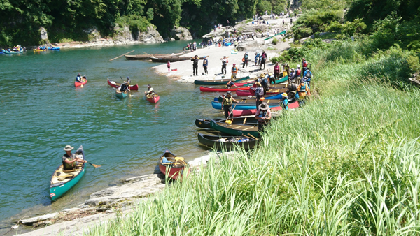 下る人を見たり、動画をとったり、お菓子を食べたり、