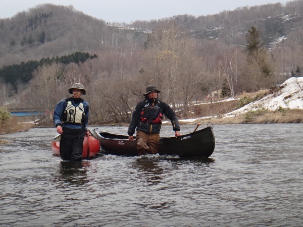 【残雪の尻別川初漕ぎカヌー】
