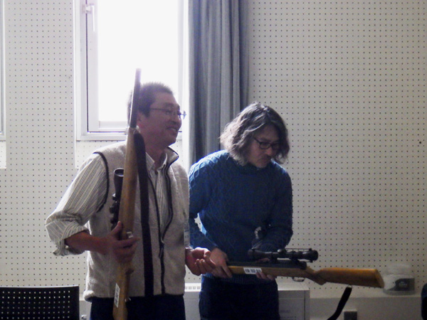 模擬銃で狩猟体験。