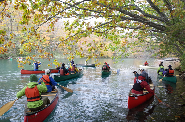 キャンプ場周辺は風が強く、漕ぎやすいところまで移動してカヌー。