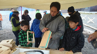 弦楽器をこよなく愛する鹿川氏がハンドカホンとカリンバ作りをサポート。
