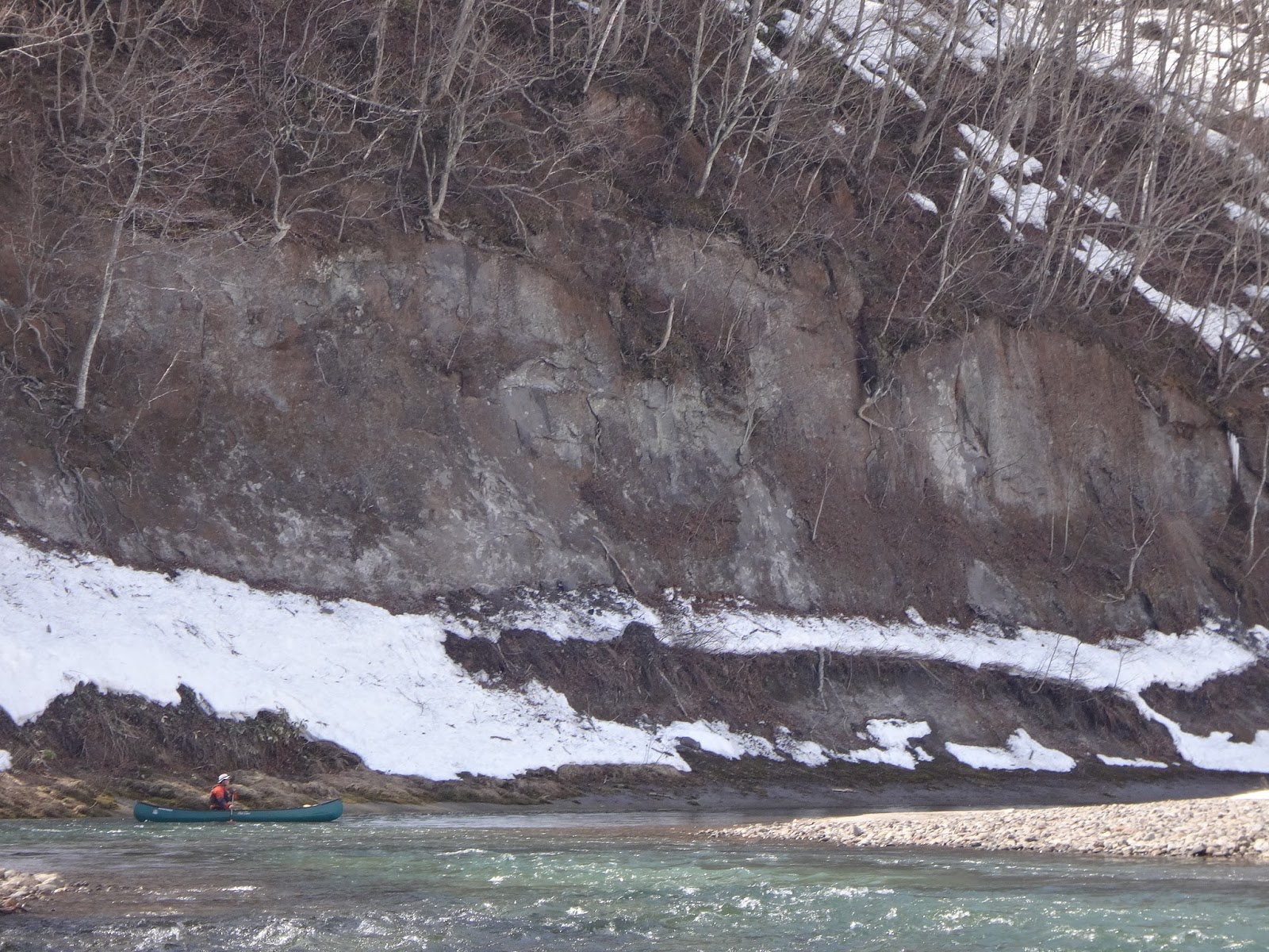この時期は雪解けのタイミング次第で水位がだいぶ変わる尻別川。