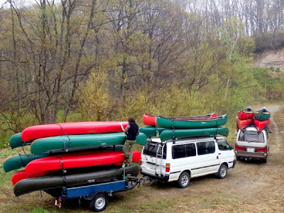 ズラリと並んだカヌーはまるで修学旅行。