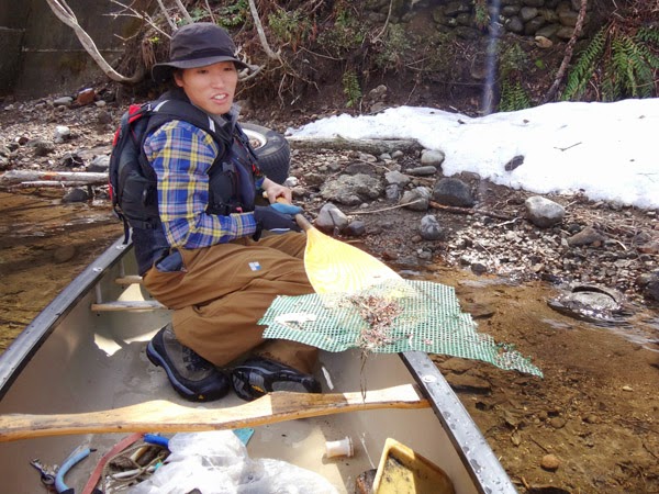カヌー班も目立つ陸上のゴミはせっせと拾う。