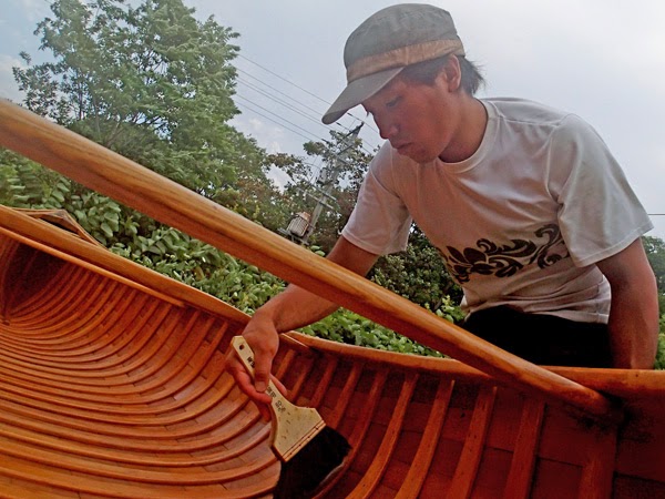 リブ材とプランク材にウッドオイルをひたすら塗る。