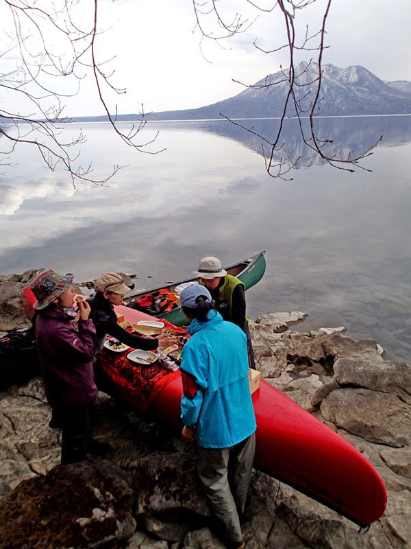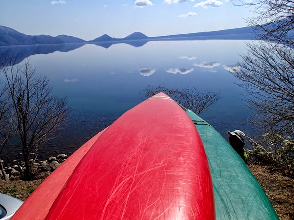 カヌーを積んだハイエースの上から見た支笏湖。絶景でした。