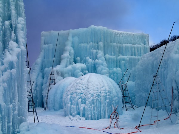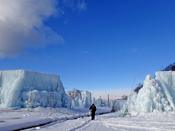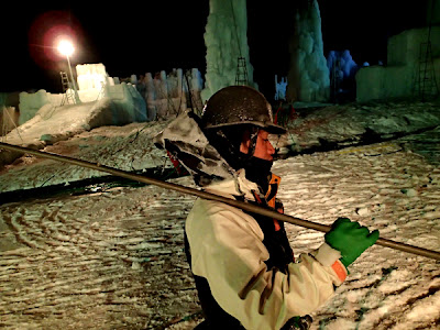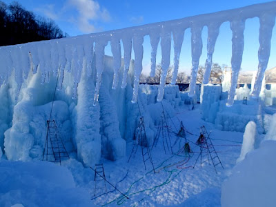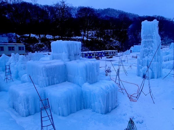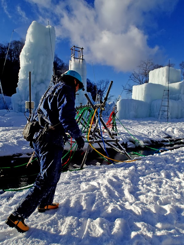 散水ノズルも脚立も凍りついてしまうので夜勤があります。
