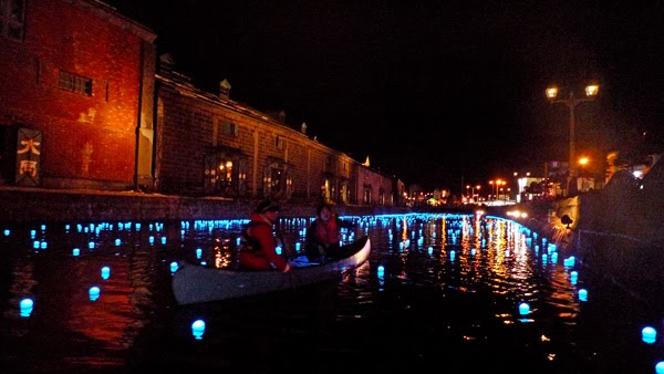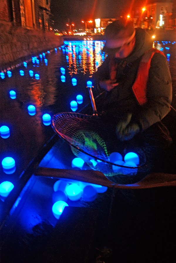 私たちカヌーチームの仕事はLED電球を水上に浮かべ