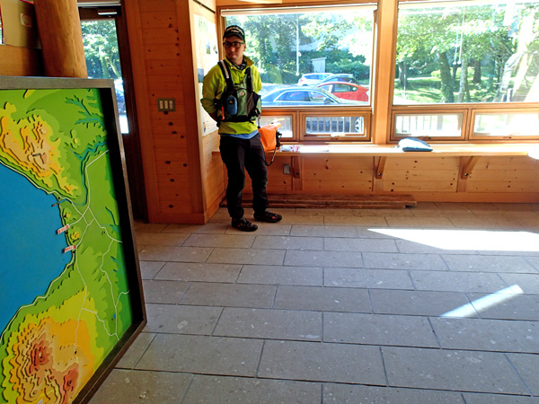 Soto Cafe集合場所休暇村支笏湖駐車場のミニビジターセンター前。