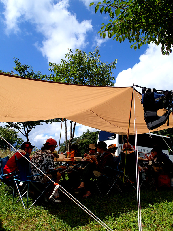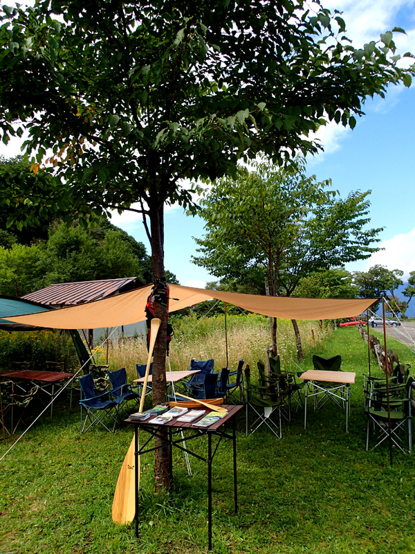 朝一の準備、いつものSoto Cafe道具ではなくタープを準備。