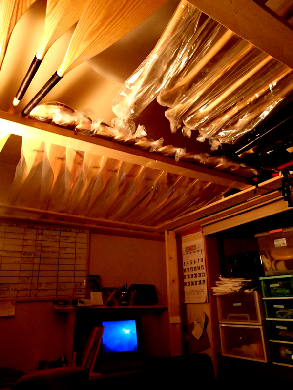 長めのトラディショナルパドルは天井が最高の収納場所。