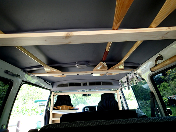 そしてずっとやりたかったハイエースのパドル置き場。