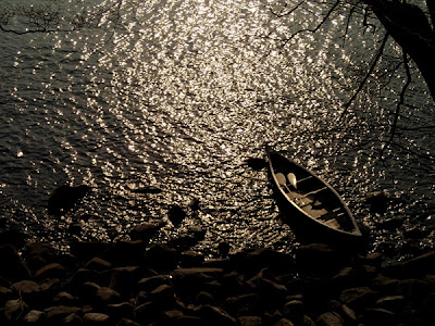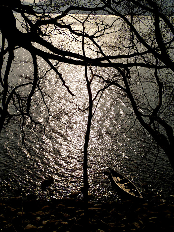 春らしい明るい湖畔。