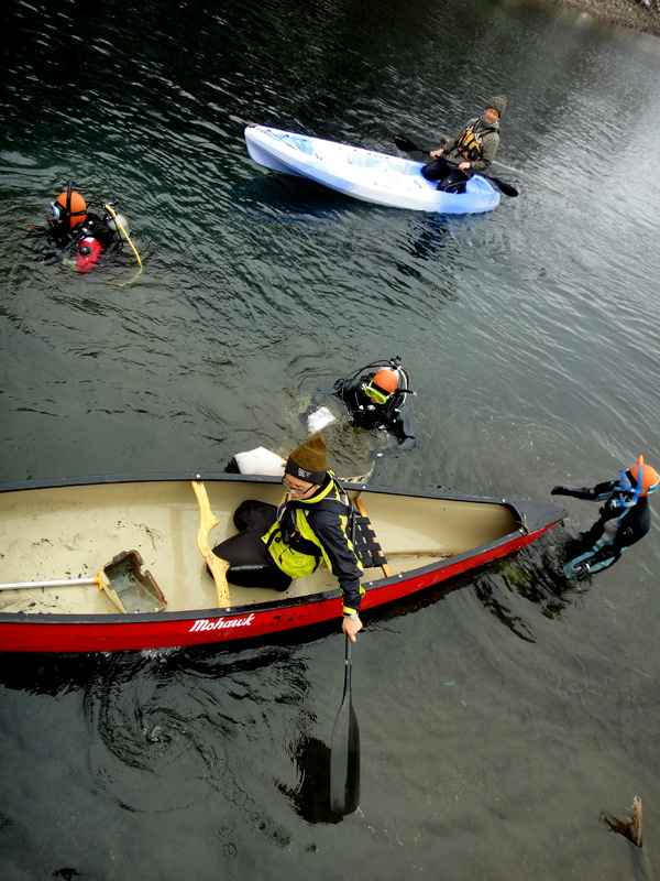 水中からあげてもらったゴミは「大滝アドベンチャーズ」と「かのあ」で陸まで搬送。
