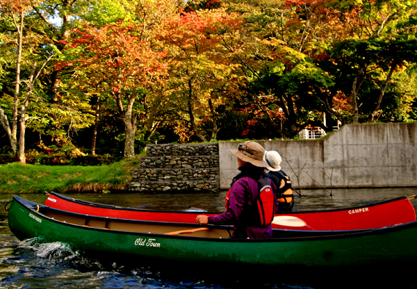 カツラの甘い香りの中のカヌーとなりました。