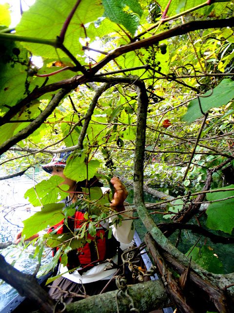 ツアー中にヤマブドウのツルの中に潜り込んで様子をチェック。