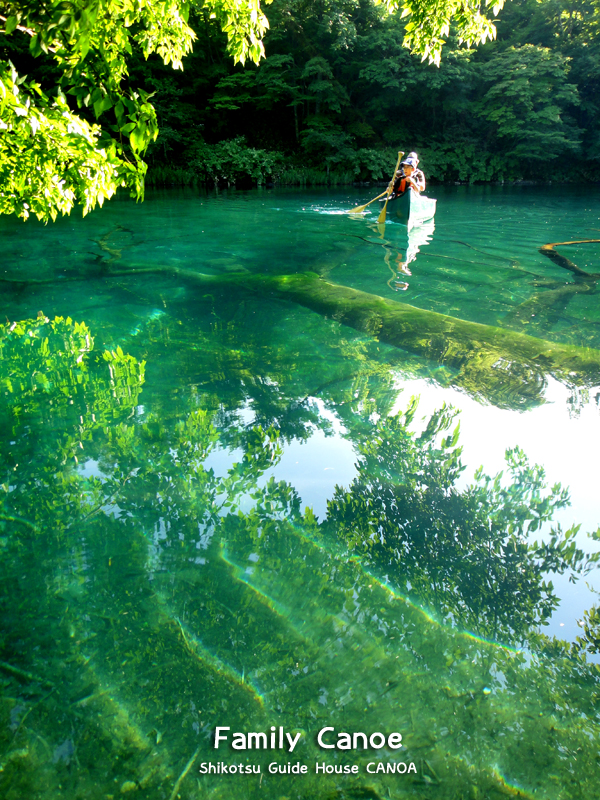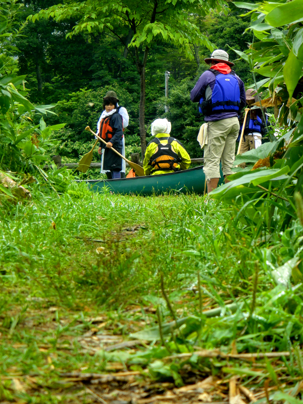 緑がまぶしい13時スタートのファミリーカヌー。