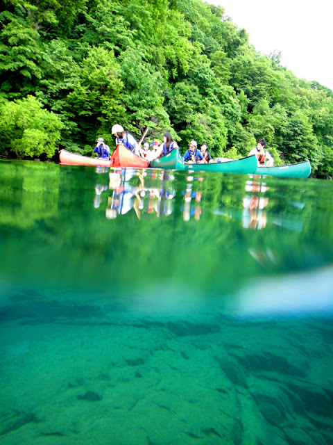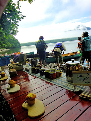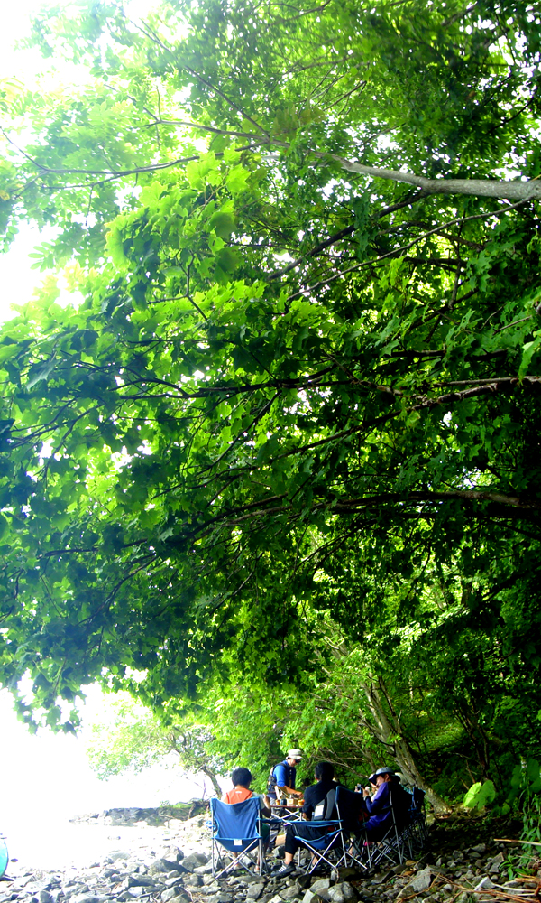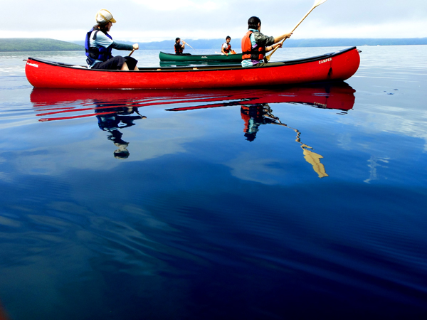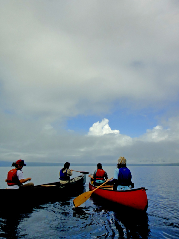 陸上でのカヌーの説明を始めるとみるみる抜けていく霧。