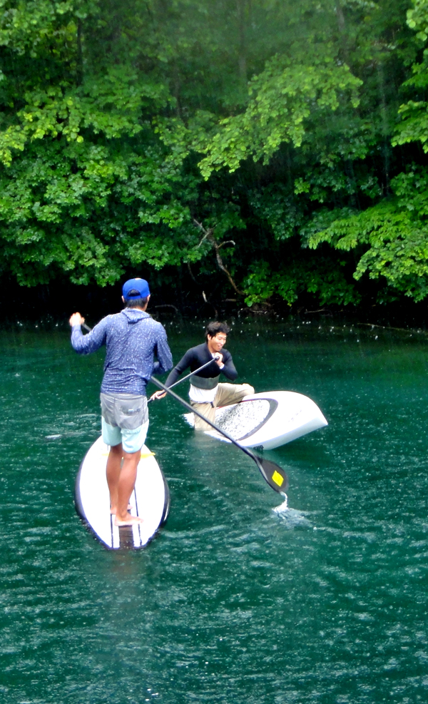 今年は秀岳荘にもインフレータブルのSUP(スタンドアップパドルボード)を置いている為