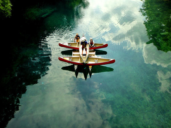 使用するカヌーは3艇で水深の深い所の方が青さが出ます。