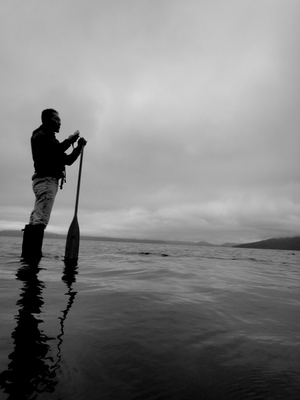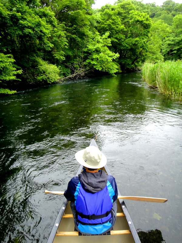 霧雨交じりの中カヌーは進む。