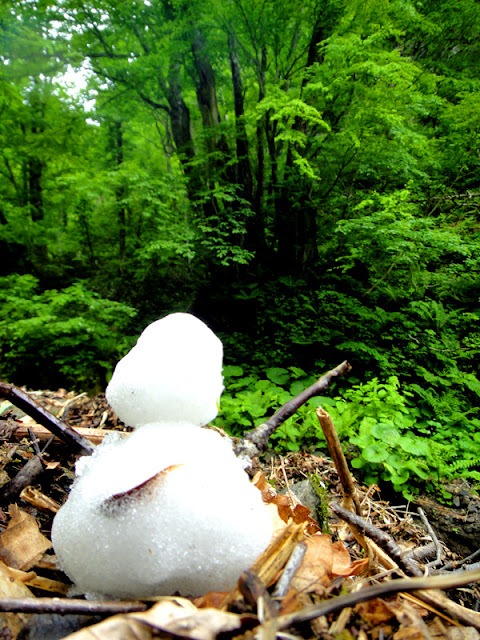湖畔から10分も歩かない森の中に突如現れる雪景色。
