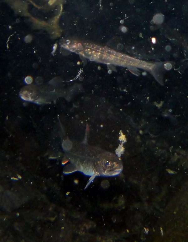 温泉ポイントの近くは水温が高く、この時期でも生き物たちを見る事ができます。