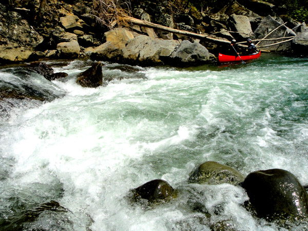雪解けも落ち着きカヌーの底をズリズリとすりながらのダウンリバー。