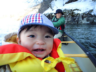 そんな汰知も1歳になり、カヌーの上でも少し余裕が出てきたのか笑顔の時間が増えています。