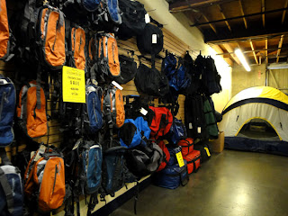 店内は倉庫にアウトドア用品を並べており、これまた楽しい!!