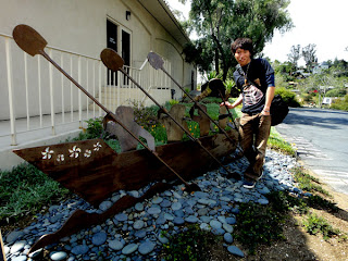 店内にはアウトリガーカヌーが展示されており何だかとても楽しげ!!
