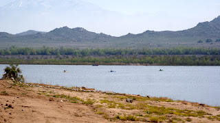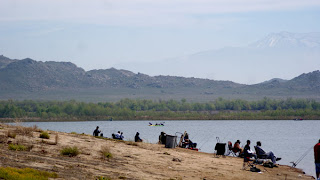湖にはたくさんの釣り人の姿が。
