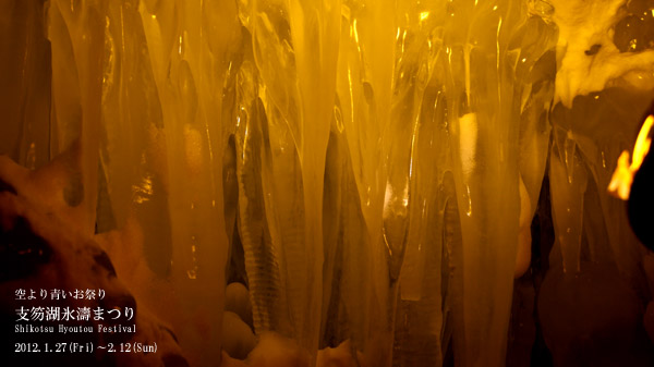 夜のライトアップ時に見られる「赤や黄色」の氷。
