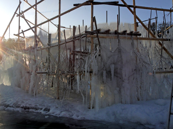 日中は日差しが強く、一時散水を中断しましたが基本的には氷がみるみる大きくなってきています。