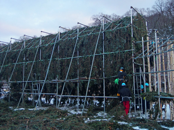 そんな中、氷濤まつり名物「苔の洞門」の苔付け作業が始まりました。