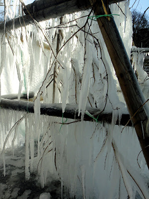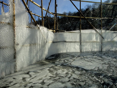 大体の氷像は刺し網をかけ、霧状の水をかけます。