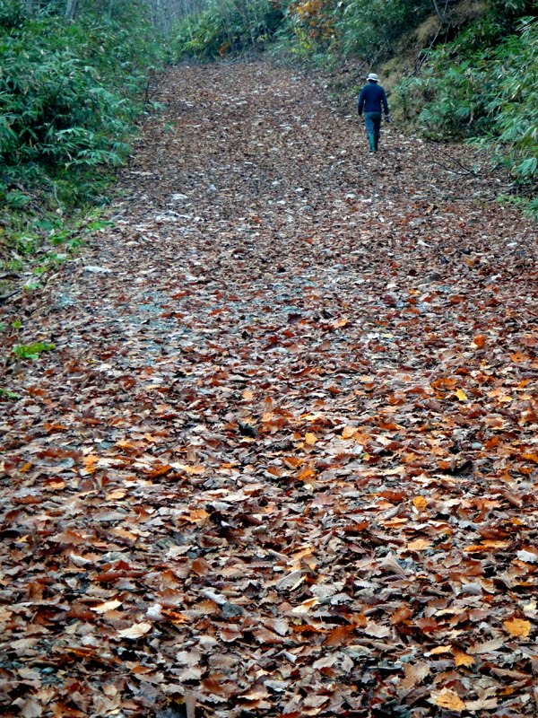 落ち葉が積もる道。